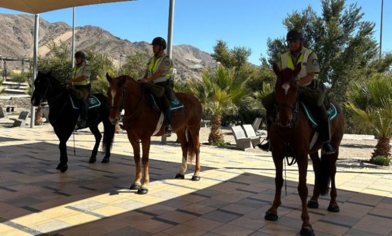 Carabineros de Chile puso en marcha un nuevo servicio de patrullajes preventivos montados en el Parque Kaukari, en la ciudad de Copiapó, con el objetivo de fortalecer la seguridad y la presencia policial en espacios públicos de alta concurrencia. La iniciativa es liderada por el jefe de Zona Atacama, Julio Marabolí Fuenzalida, y contempla el despliegue de tres binomios policiales conformados por caballo y jinete, los que comenzaron a operar desde el 21 de abril, realizando recorridos de lunes a viernes entre el mediodía y las 18:00 horas.